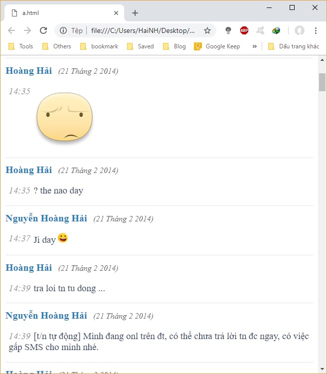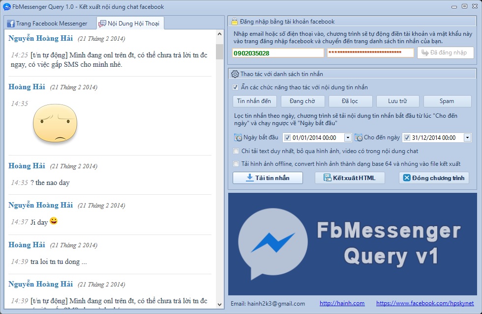 Chương trình này mình viết có chức năng kết xuất nội dung tin nhắn trong facebook messenger ra bên ngoài năm 2016, mình sử dụng C# và geckofx để auto một số quá trình cuộn trang thay vì dùng api.