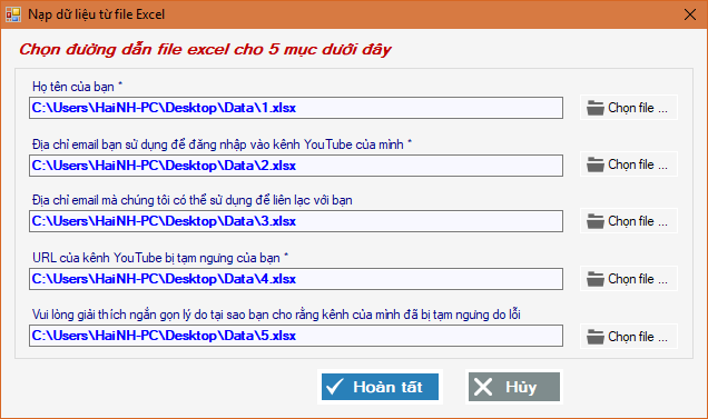 Nạp danh sách email, nội dung từ file excel