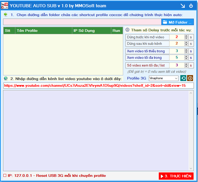+ Mở cococc duyệt qua danh sách các profile đó và mở list video youtube