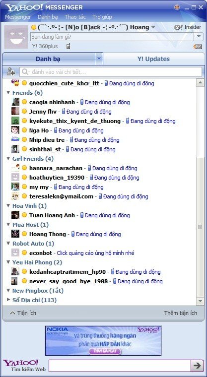 Sáng nay dậy sớm vào yahoo thì thấy toàn là “Đang dùng điện thoại”, hic,Sau 3 ngày ốm liệt giường giờ cũng mò dậy tiếp tục được công việc rồi