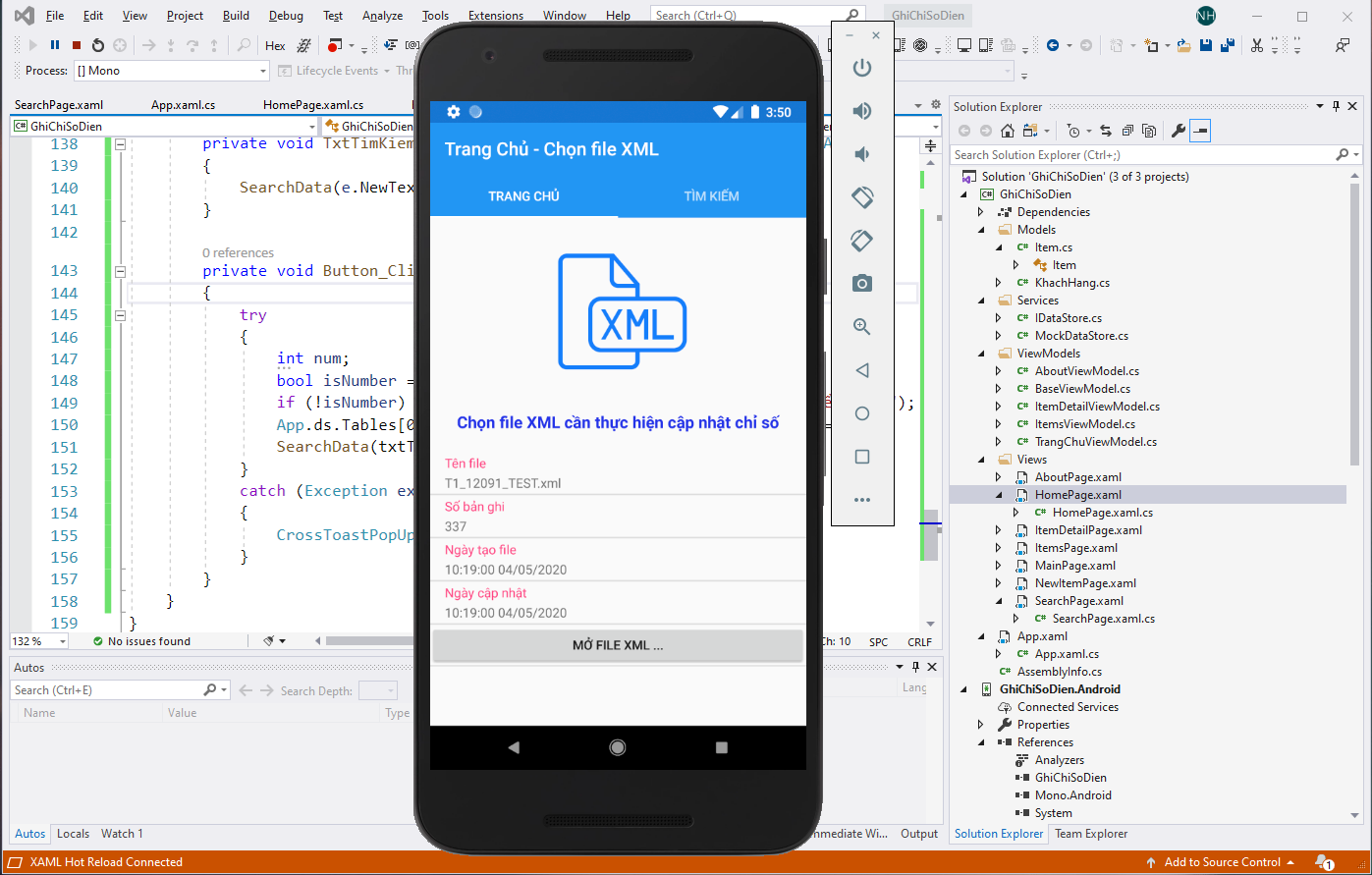Đây là module trên thiết bị di động kết nối với hệ thống phần mềm quản lý các trạm cung cấp điện nước mini nhằm phục vụ người ghi chốt chỉ số bằng tay. Mình cũng có giải pháp đồng bộ chỉ số từ xa hoặc dùng camera điện thoại nhận diện chỉ số số công cơ nhé, cái này mình test bằng xamarin xem thế nào thôi 😀