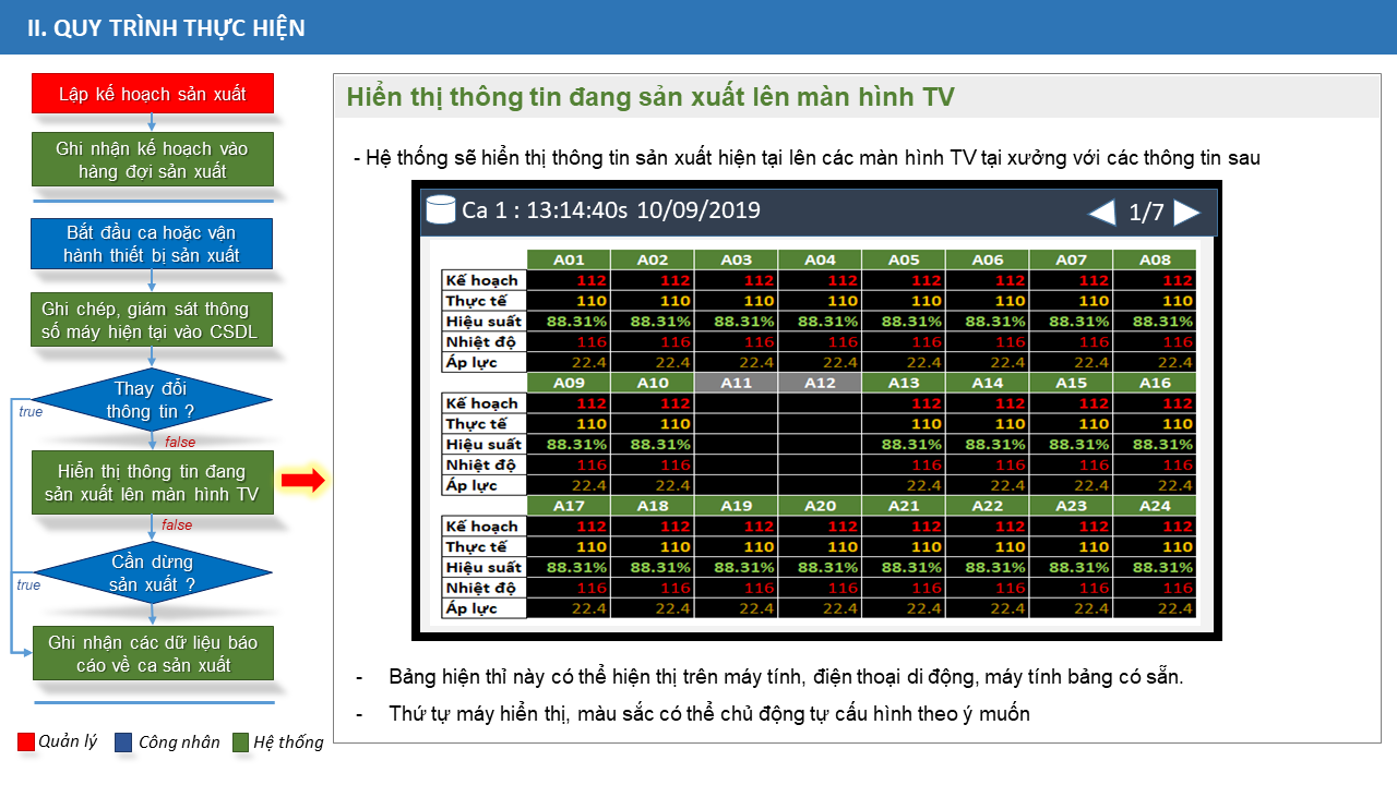 - Hiển thị trực quan các thông số, dữ liệu của cả quá trình sản xuất.