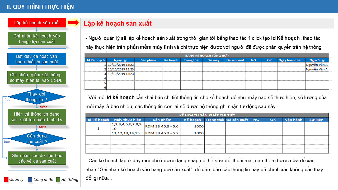 - Hiển thị mục tiêu sản xuất và kết quả thực tế của việc sản xuất.