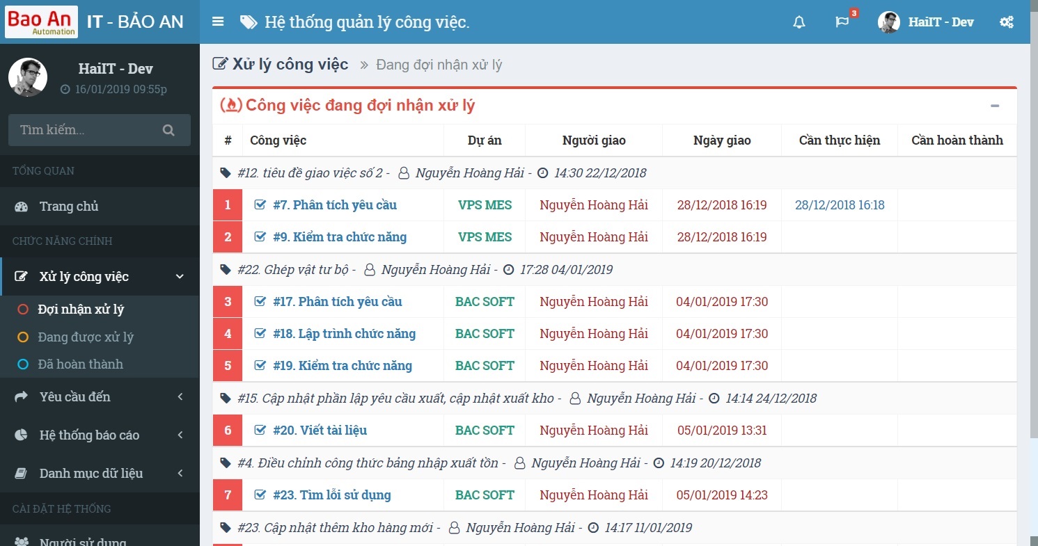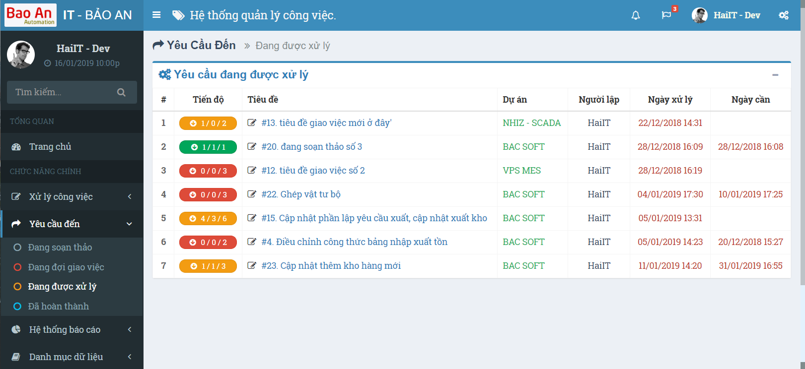 Dưới đây là một vài hình ảnh về hệ thống quản lý công việc cho nhóm IT, các chứng năng chính: