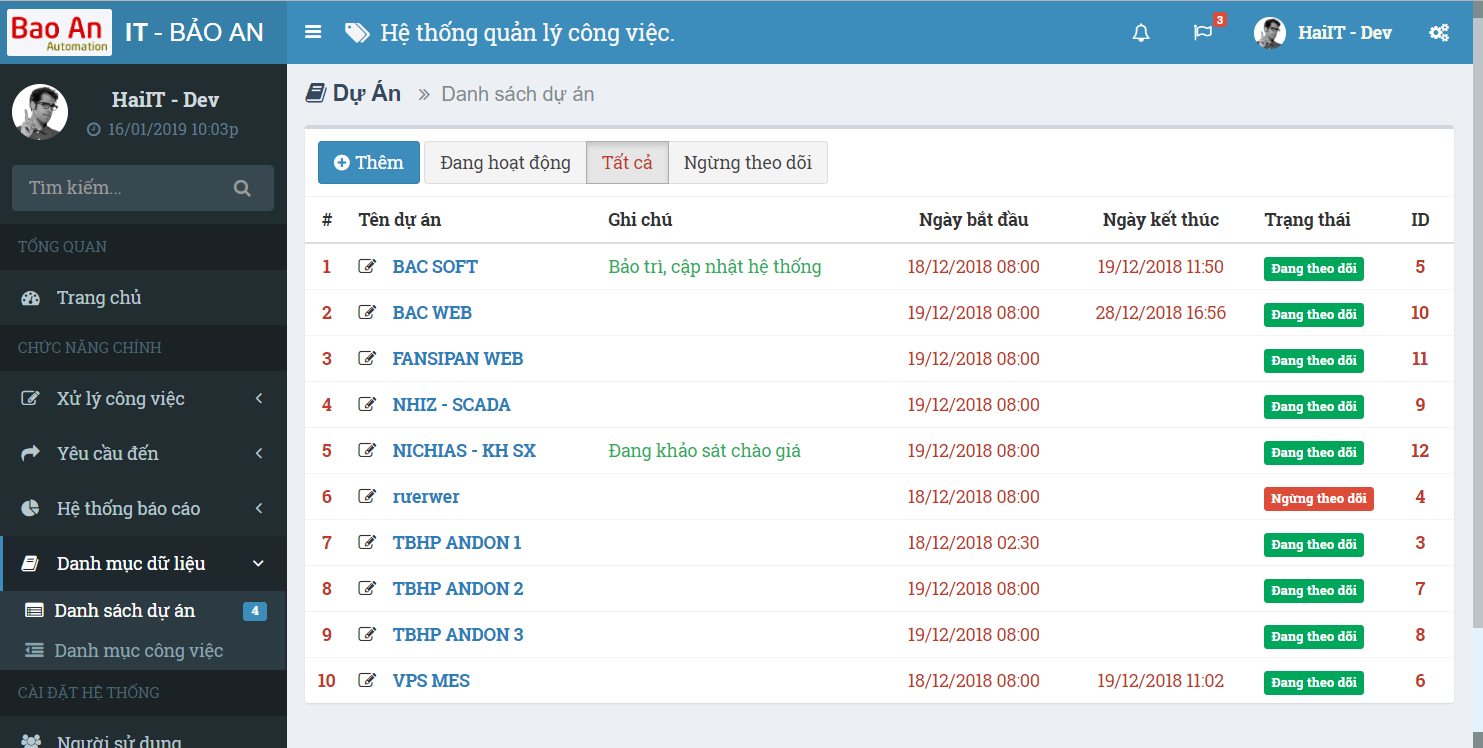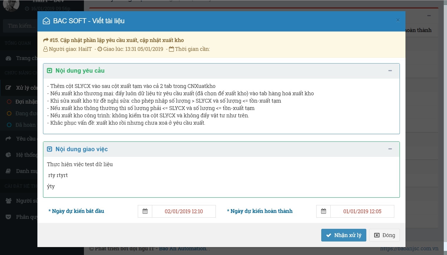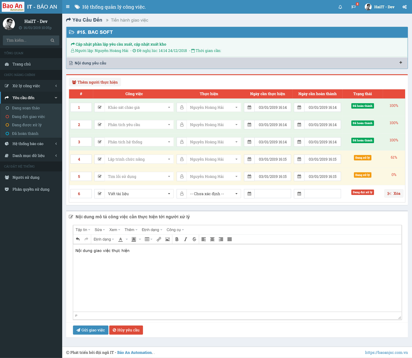 Hệ thống phần mềm quản lý công việc bộ phận IT