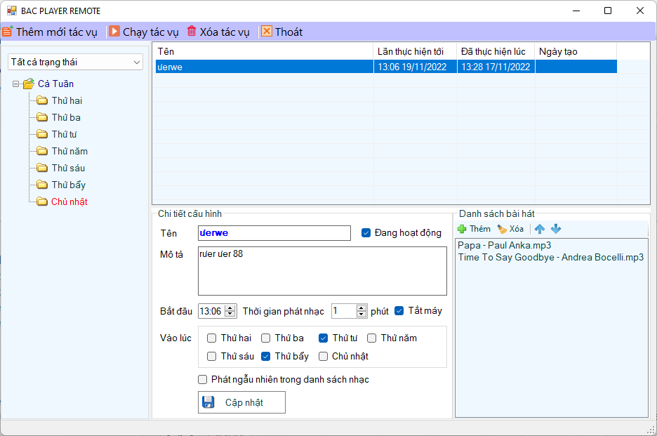 BAC_PLAYER_REMOTE.exe: Là chương trình dùng để đặt lịch phát theo ngày, theo giờ