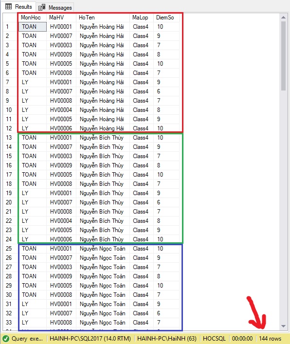 SELECT A.MonHoc,A.MaHV,B.MaHV MaHV2,B.HoTen,B.MaLop,A.DiemSo FROM DIEM_THI A RIGHT OUTER JOIN HOC_VIEN B ON A.MaHV = B.MaHV -- Hoặc có thể viết tắt -- SELECT A.MonHoc,A.MaHV,B.MaHV MaHV2,B.HoTen,B.MaLop,A.DiemSo FROM DIEM_THI A RIGHT JOIN HOC_VIEN B ON A.MaHV = B.MaHV