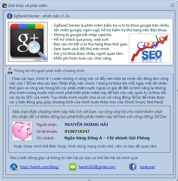 Mình là 1 coder nhưng vì công việc xô đẩy nên mình đã từng làm công việc của 1 SEOer. Nhận thấy việc check 1 lượng từ khóa lớn mỗi ngày mất rất nhiều thời gian và công sức trong khi các phần mềm nước ngoài có giá rất đắt và tính năng lại không như mình mong muốn nên mình phát triển phần mềm này để tiện cho việc quản lý và theo dõi các dự án SEO của mình.