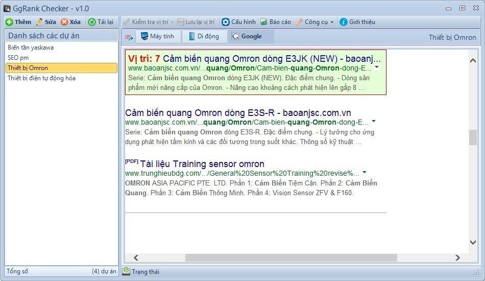 Phần mềm kiểm tra vị trí từ khóa trên google
