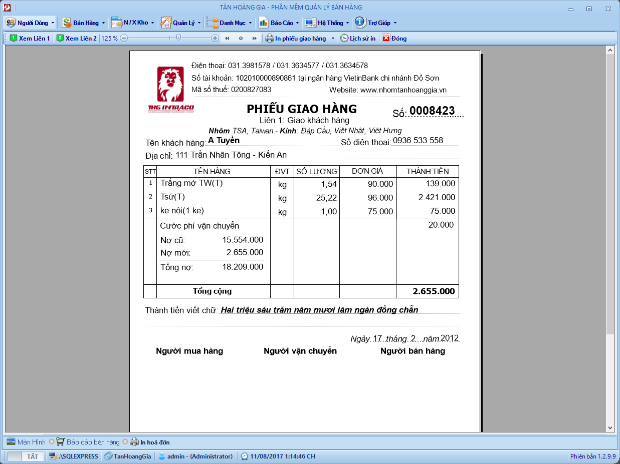 In hóa đơn bán hàng