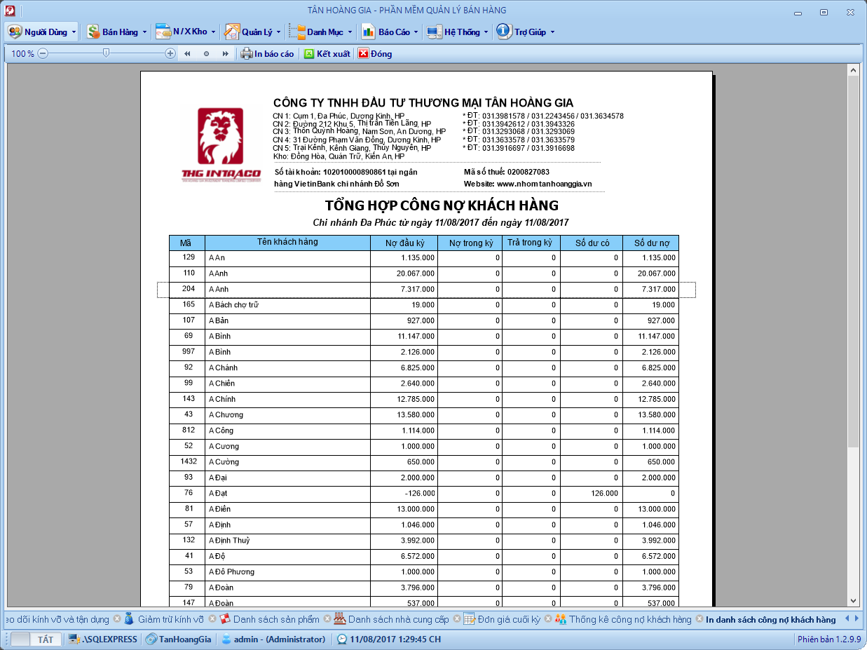 Bảng tổng hợp công nợ khách hàng