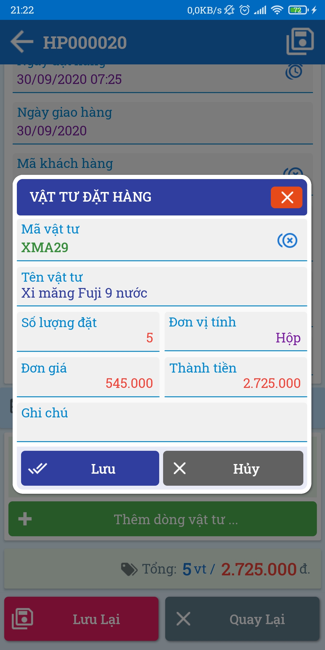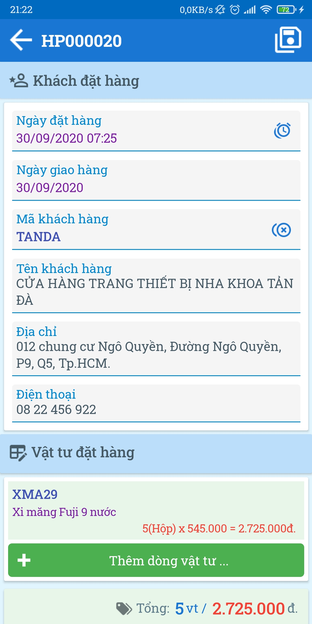 Giao diện này là của android, các bạn có thể tham khảo giao diện app trên ios ở đây https://hainh.dev/phan-mem-quan-ly-don-dat-hang-tren-dien-thoai/