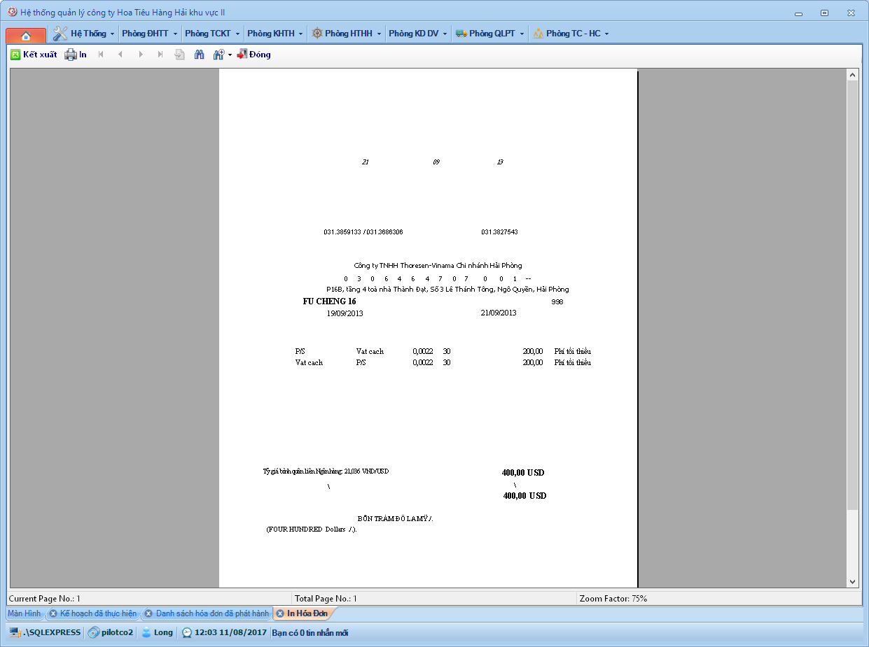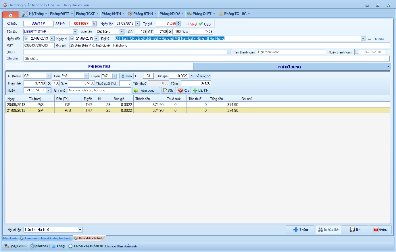 Phần mềm quản lý ERP công ty Hoa Tiêu hàng hải