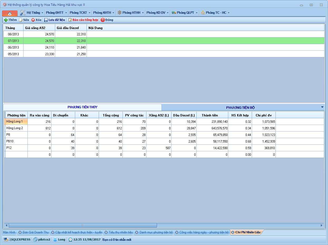 - Báo cáo nhiên liệu tiêu thụ PT thủy