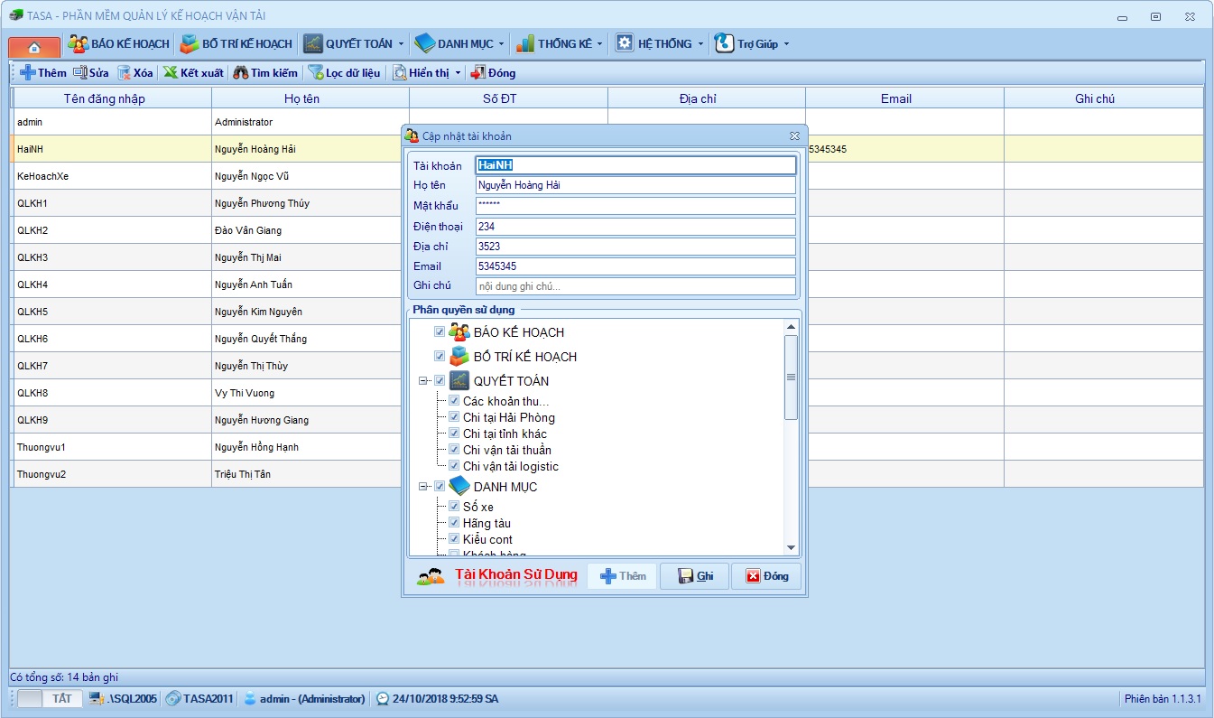 Phiên bản online chạy trên nền web, thiết bị di động: https://hainh.dev/phan-mem-quan-ly-ke-hoach-van-tai-online/
