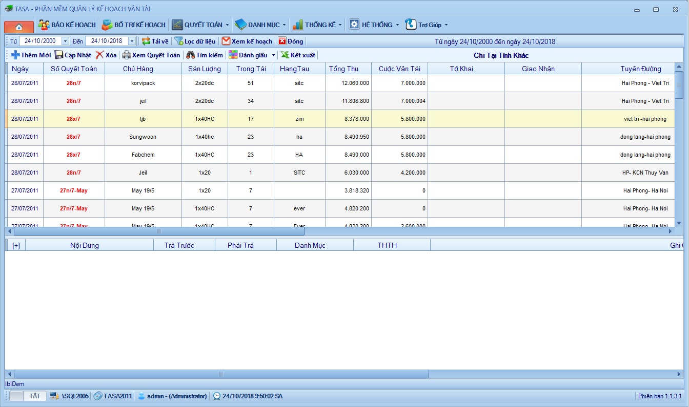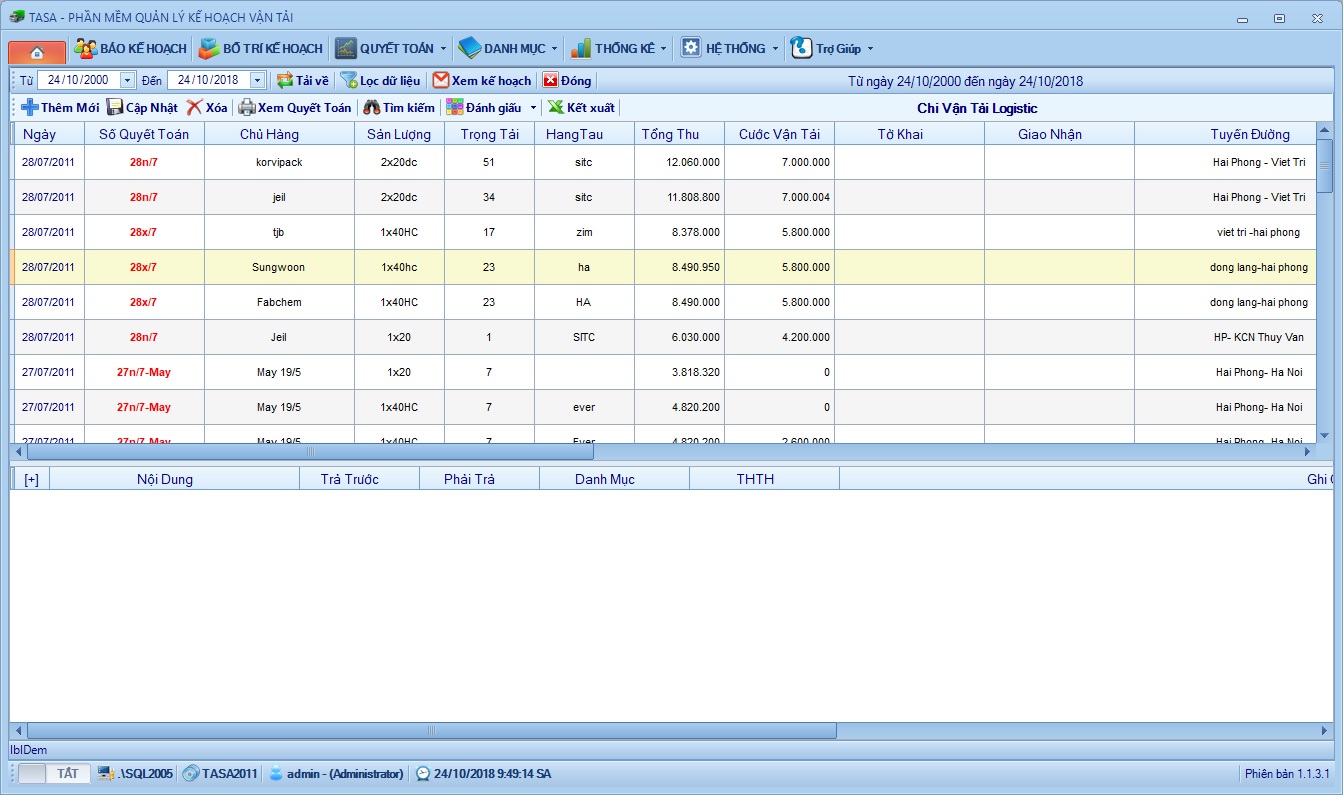 Cập nhật các khoản chi liên quan đến vận tải logitic cho mỗi kế hoạch