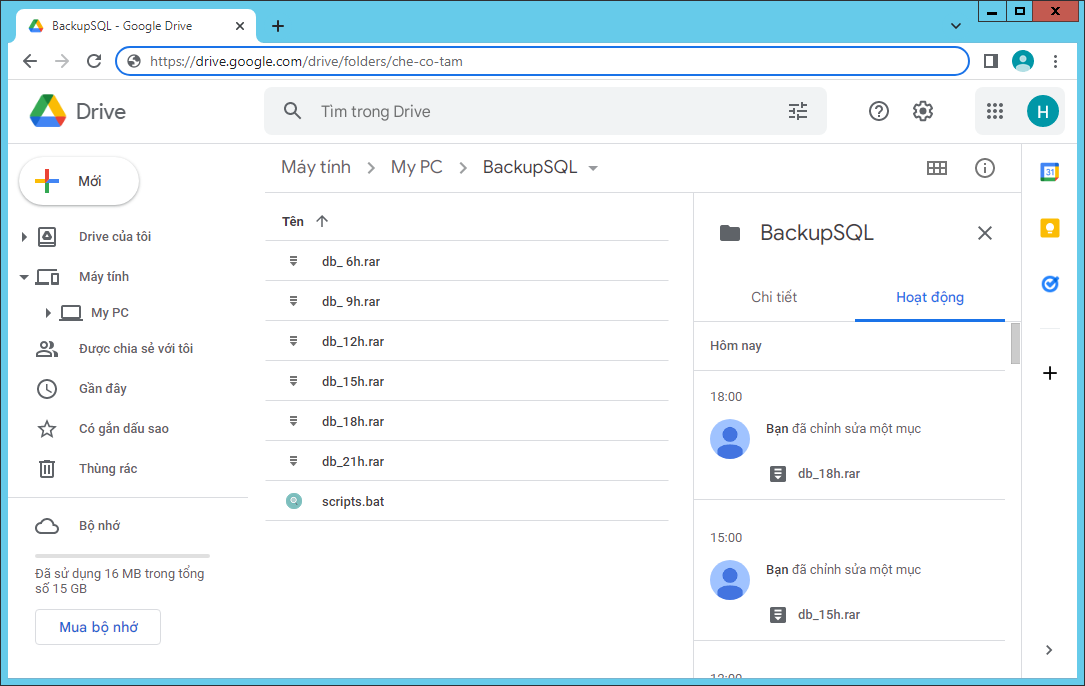 Nếu muốn backup lên Cloud nữa thì ta có thể sử dụng Google drive for desktop, cài nó lên và add folder backup vào là sẽ tự syns lên cloud