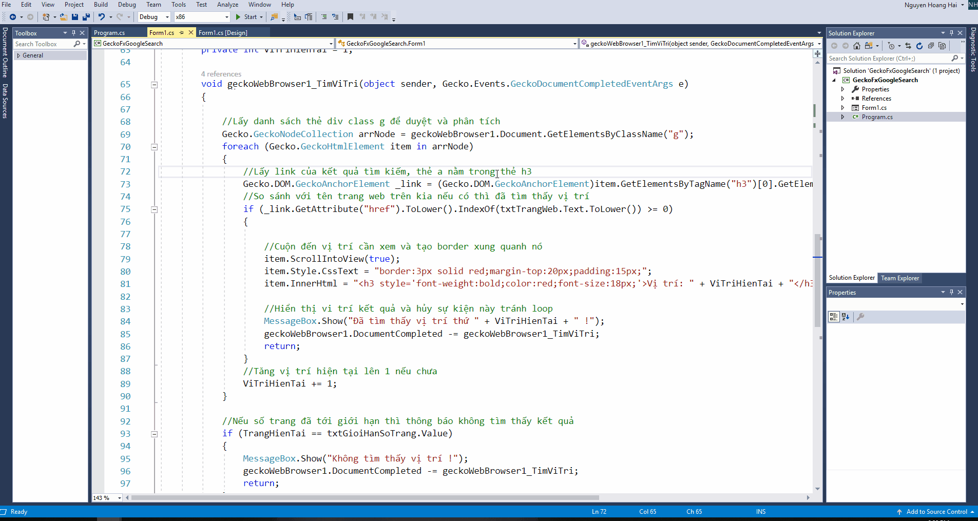 Mình sẽ làm 1 ví dụ về việc sử dụng GeckoFx để tìm kiếm vị trí từ khóa trên google giống như ứng dụng Phần mềm kiểm tra vị trí từ khóa trên google nhé.