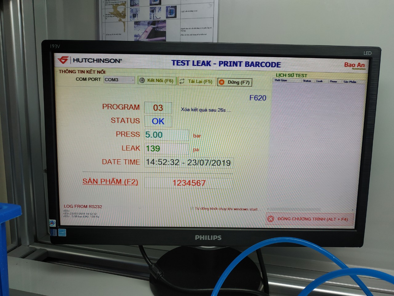 Chương trình kết nối đến các máy đo và nhận tín hiệu qua RS232, phân tích kết quả OK hay NG, nếu OK sẽ tiến hành xuất lệnh in tem barcode ra máy in.