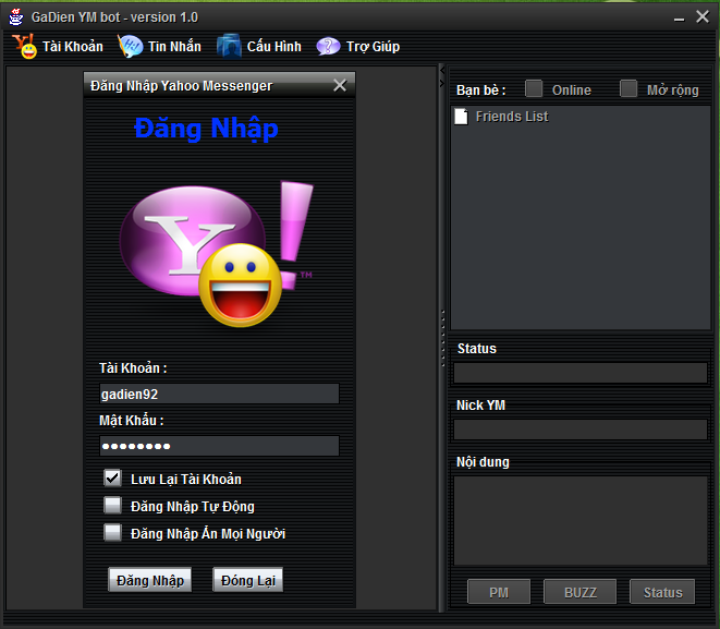 Đây là chương trình chatbot đầu tiên mình viết bằng yahoo messenger tư hồi 2010. Chương trình viết bằng Java và sử dụng Yahoo Messenger Protocol. Con bot này có khá nhiều chức năng như: + Tán gẫu, dùng thư viện kịch bản trò truyện. + Check nick có online hay offline, có ẩn hay...