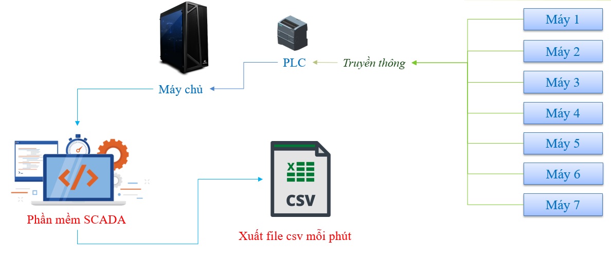 Hệ thống kết nối đến PLC và trích xuất dữ liệu theo thời gian, tổng hợp lại mỗi ngày thành một file excel, đến giờ sẽ tự động gửi email dữ liệu của ngày hôm trước vào các địa chỉ đã cấu hình được nhận.