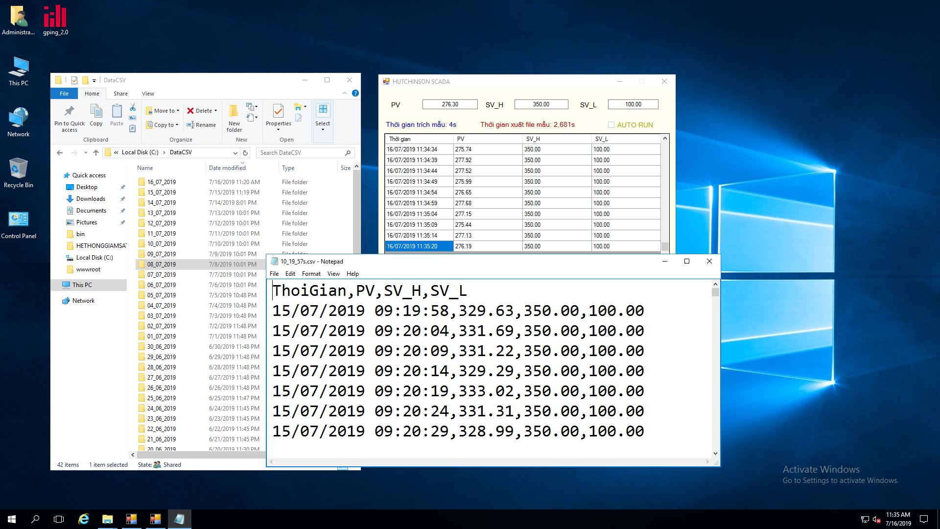 Hệ thống kết nối đến PLC siemens S7 1200 đọc dữ liệu và xuất ra file csv mỗi giờ một file. Hệ thống này giám sát áp suất của máy theo thời gian.