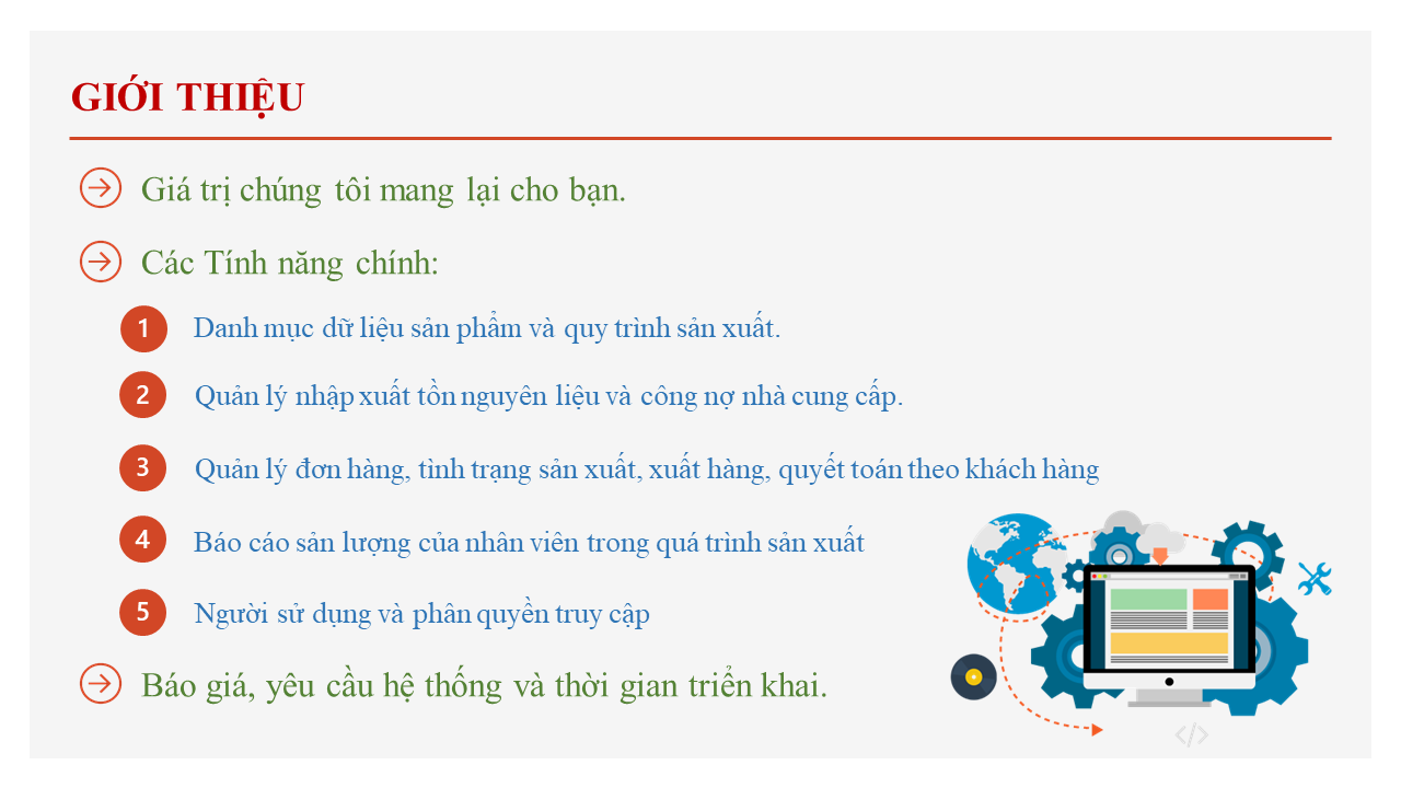 Giá trị mang lại Giảm chi phí quản lý và chi phí trong sản xuất của doanh nghiệp. Nâng cao hiệu quả hoạt động sản xuất, tối đa hóa năng suất của máy móc, người lao động nhờ sự liên kết giữa các bộ phận và quy trình sản xuất với các luồn thông tin,...
