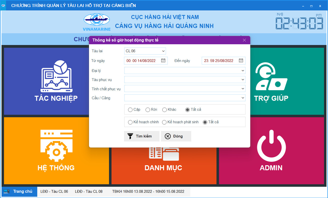 Phần mềm quản lý kế hoạch tàu lai dắt
