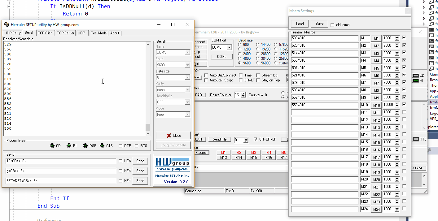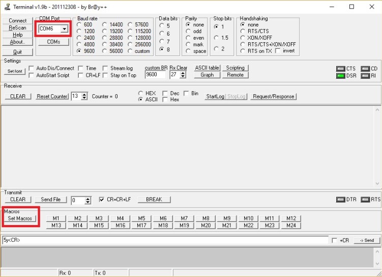 Chọn COM Port 6, và bấm nút Set Macros để giả lập gửi giá trị cho COM6 theo kiểu timer.