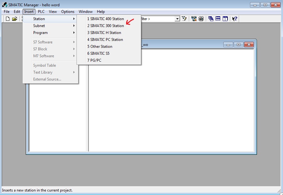 Vào menu Insert -> Station -> SIMATIC 300 Station