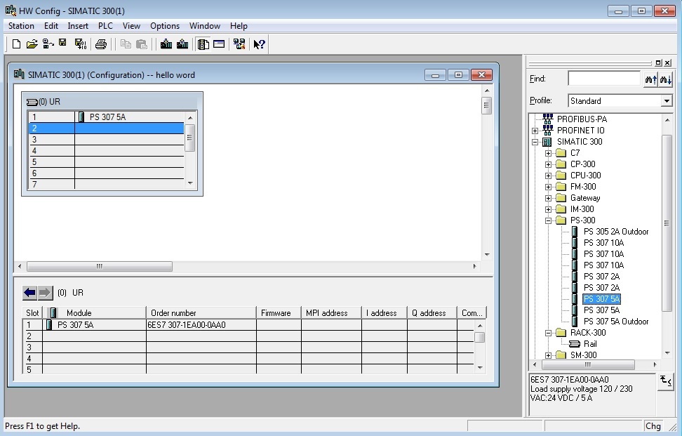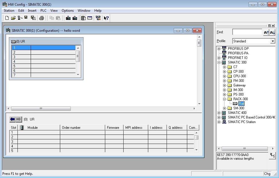 Chọn SIMATIC 300 -> RACK-300 -> Rail