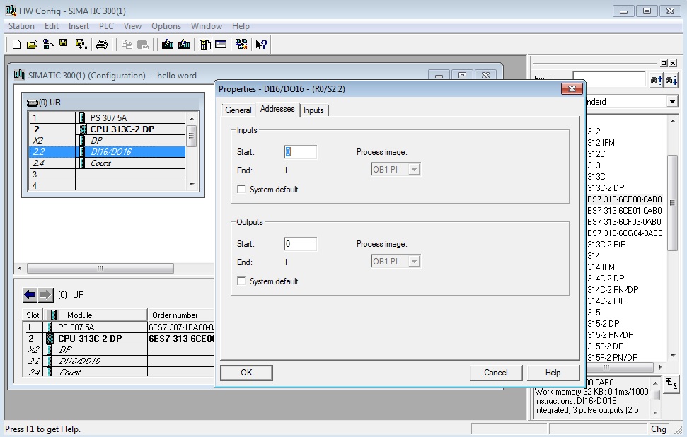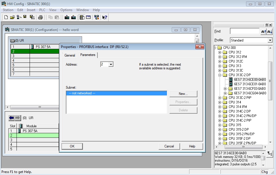 Chọn CPU -> CPU – 300 -> CPU 313C-2 DP -> 6ES7 313-6CE00-0AB0 -> ok