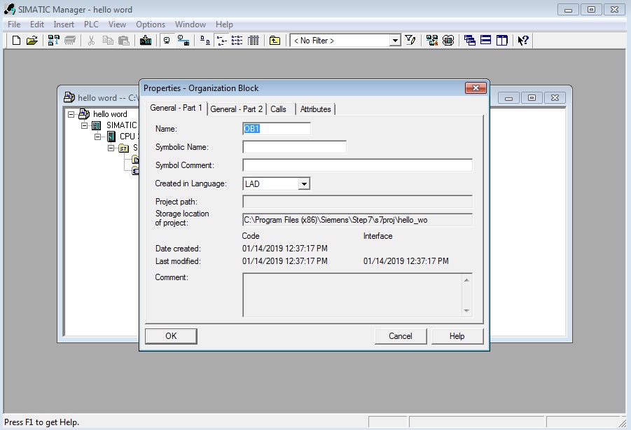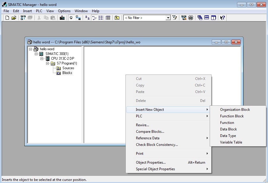 Chọn S7 Program -> Blocks , -> Insert New Object -> Organization Block