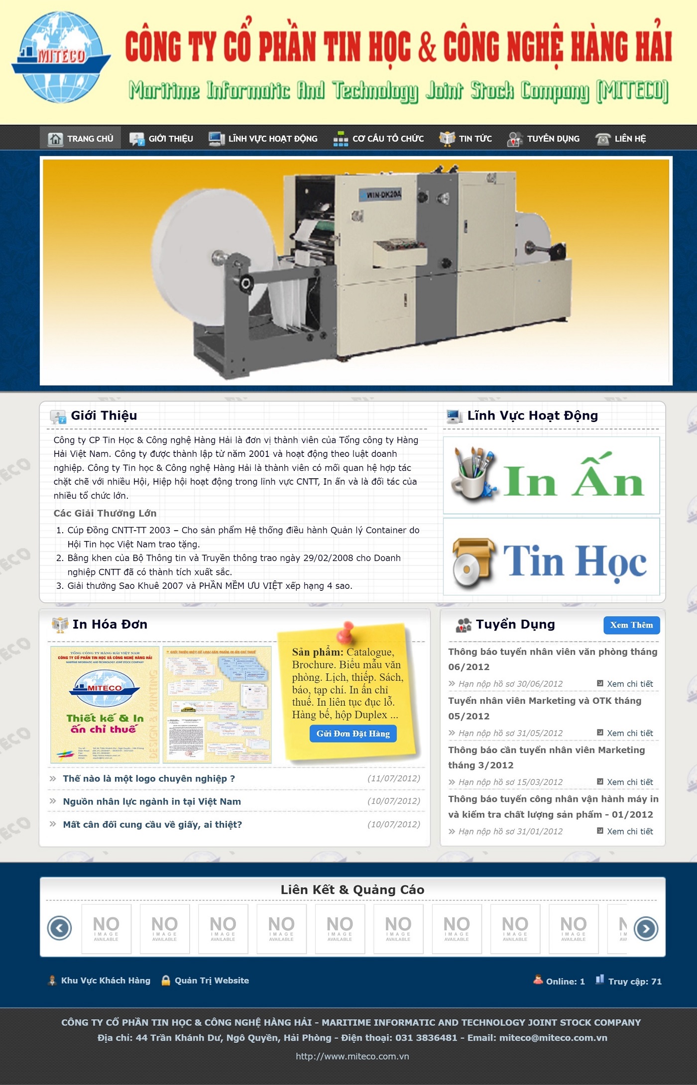 Đây là trang web mình thiết kế cho công ty nơi mình đã làm việc hồi năm 2010. Công ty hoạt động trong 2 lĩnh vực chính là In Ấn và Tin Học. Website được thiết kế bằng ngôn ngữ asp.net VB.NET và MS SQL.